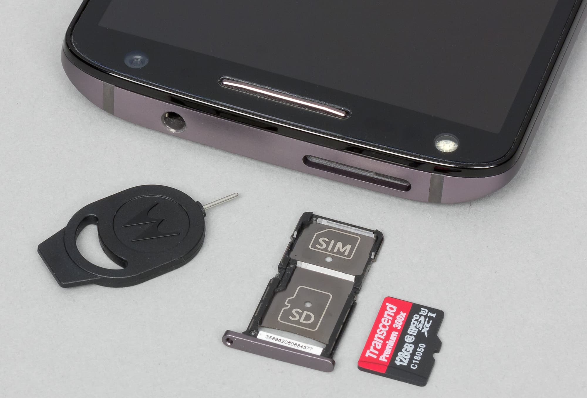 Объем оперативной памяти (LPDDR4) смартфона составляет 3 ГБ. Объем встроенной памяти можно выбрать между 32 и 64 ГБ. В случае с версией на 32 ГБ пользователю остается около 21,5 ГБ свободного пространства. Этот объем можно увеличить за счет карт microSD, также есть возможность подключения к порту USB внешних флэш-накопителей в режиме OTG. Карты microSD поддерживаются емкостью до 2 ТБ, на практике наша проверочная карта Transcend Premium microSDXC UHS-1 объемом 128 ГБ уверенно распозналась устройством.
