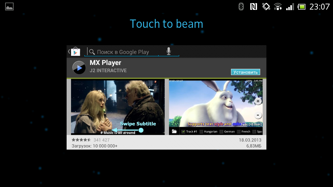 Учитывая, что собственная скорость NFC очень мала, для быстрой передачи файлов обычно используется Bluetooth или Wi-Fi, а NFC работает только на этапе согласования параметров подключения и установления связи. Для проверки этого сценария мы попробовали на наших устройствах несколько программ для передачи файлов с заявленной поддержкой NFC.