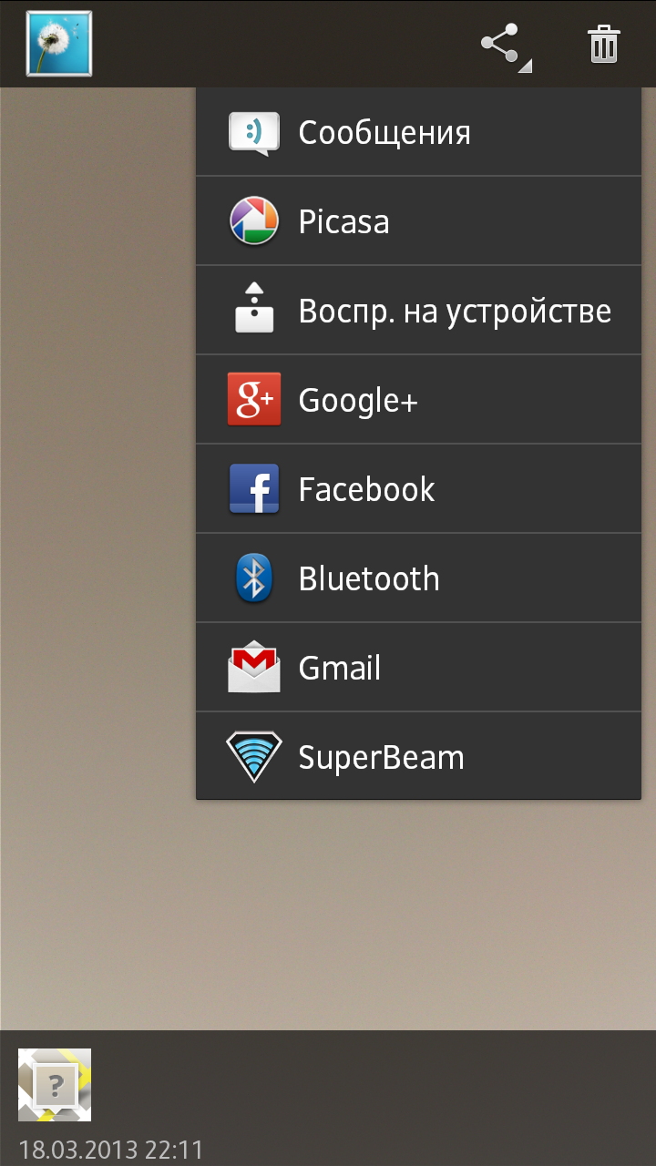 Еще более высокую скорость показала утилита SuperBeam WiFi Direct Share. Она менее универсальна, чем File Expert HD, однако способна обеспечить соединение по Wi-Fi, даже если у устройств нет поддержки Wi-Fi Direct. А скорость передачи составила в наших тестах около 2 МБ/с, что уже очень неплохо. Таким образом даже видеоролики в несколько десятков мегабайт можно будет перенести за разумное время. Как и ранее, NFC используется здесь только для начальной настройки соединения устройств. Поддерживается передача любых типов файлов. Утилита встраивается в стандартное меню приложений «поделиться».