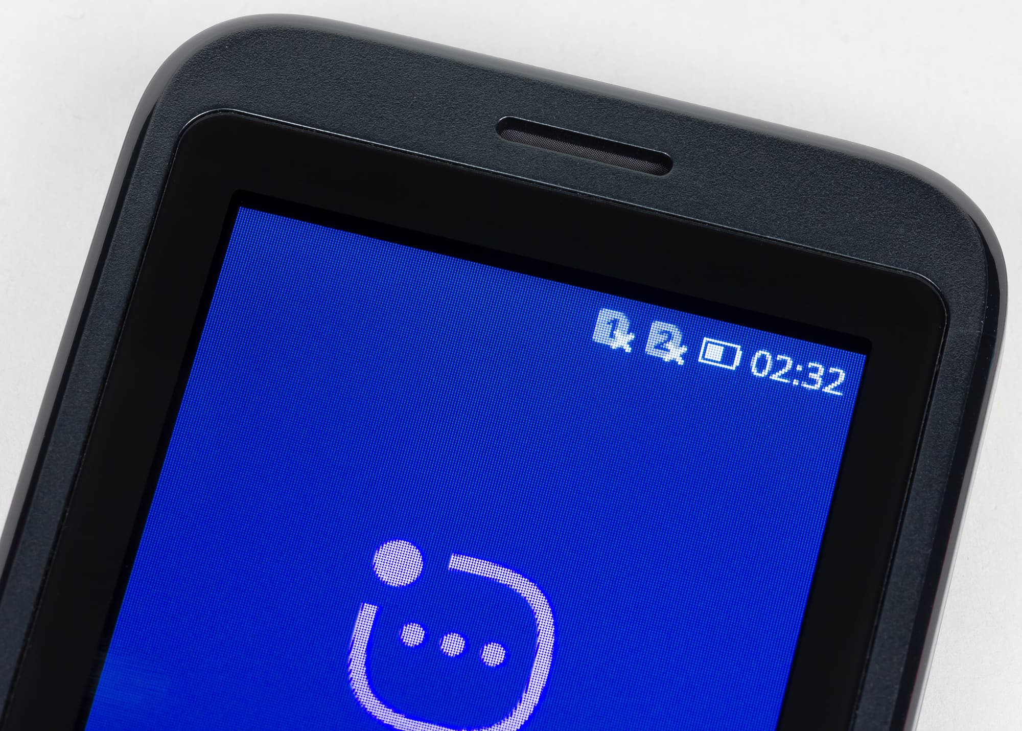 - Несенсорный цветной дисплей TN 2,4″, 240×320 (3:4), защитное минеральное стекло
