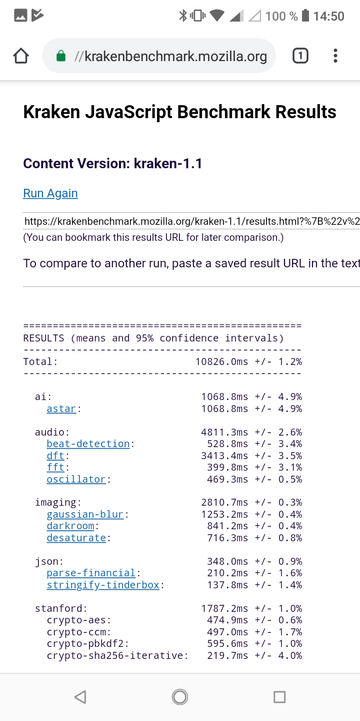 | Mozilla Kraken (мс, меньше — лучше) | 10826 | 4582 | 4561 | 5220 | 4062 |