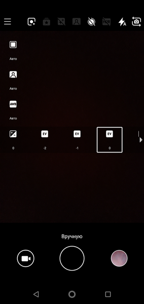 В режиме ручных настроек нет регулировки ни светочувствительности, ни скорости затвора, зато есть варианты фокусировки (центровзвешенный, оценочный), которые обычно никто никогда не трогает, выбор фокусного расстояния (бесконечность, макро), а также экспокоррекция и баланс белого. Есть авто-HDR и режим с размытием фона. Штатной возможности сохранения снимков в RAW нет.