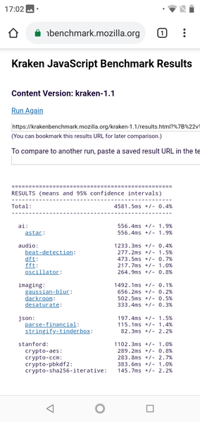 | Mozilla Kraken (мс, меньше — лучше) | 4582 | 4561 | 3804 | 4126 | 4487 |