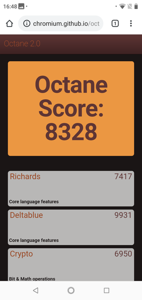 | Google Octane 2 (больше — лучше) | 8328 | 8875 | 10137 | 9521 | 9168 |