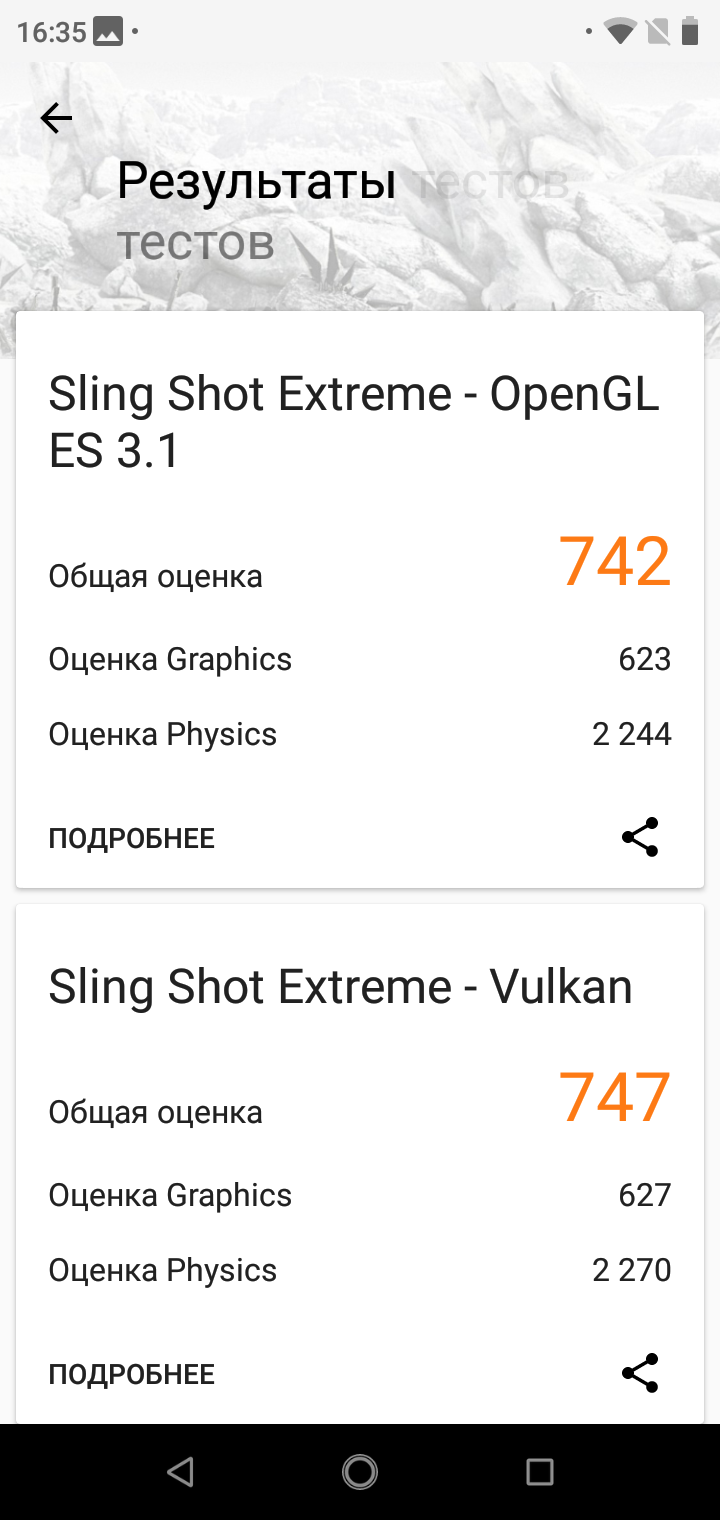 | 3DMark Ice Storm Sling Shot ES 3.1 (больше — лучше) | 742 | 951 | 1347 | 739 | 942 |