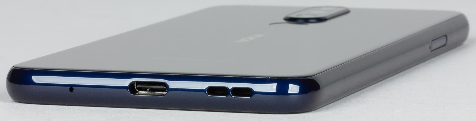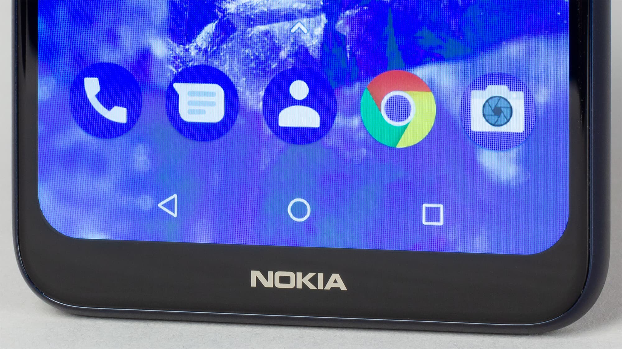 Внизу под экраном нет ни аппаратных кнопок, ни сканера отпечатков, зато HMD Global не упускает шанса посветить логотипом легендарной некогда финской Nokia.