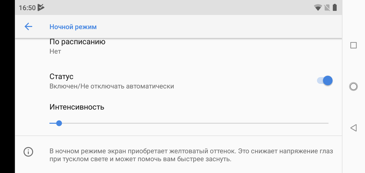 В принципе, яркий свет может приводить к нарушению суточного (циркадного) ритма (см. статью про iPad Pro с дисплеем 9,7 дюйма), но все решается подстройкой яркости до комфортного уровня, а искажать цветовой баланс, уменьшая вклад синего, нет абсолютно никакого смысла. Впрочем, эту настройку можно использовать для коррекции цветового баланса.