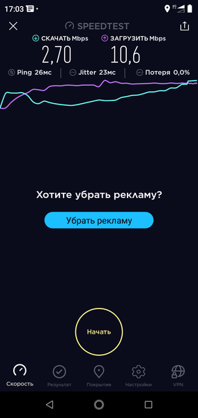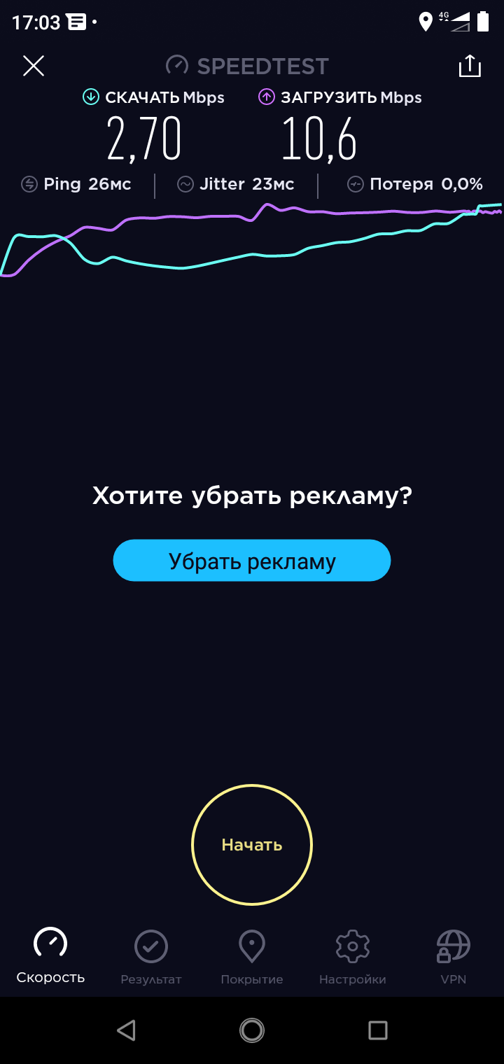 Вообще, чипсет MediaTek Helio P60 должен включать модем с поддержкой LTE Cat.7/Cat.13, способный обеспечить скорость обмена данными 300/150 Мбит/с. Однако на фирменном сайте почему-то указана поддержка только LTE Cat.4. В любом случае, смартфон поддерживает все используемые в России частоты (LTE FDD Band 3, 7, 20 и TD Band 38) и в пределах городской черты московского региона ведет себя вполне уверенно.