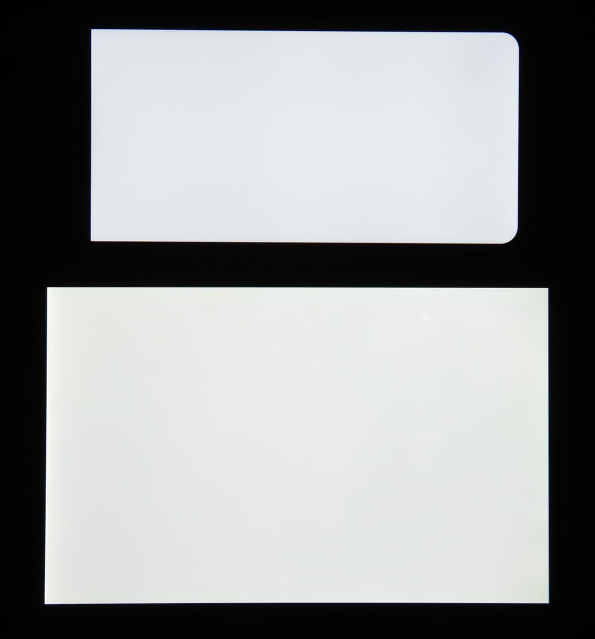 Яркость под углом у экранов уменьшилась (как минимум в 5 раз, исходя из разницы в выдержке), и снижение яркости примерно одинаковое.