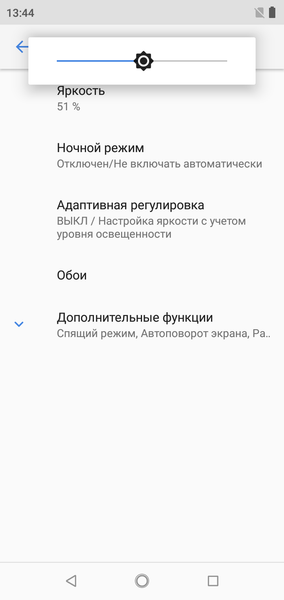 При ручном управлении яркостью и при выводе белого поля во весь экран максимальное значение яркости составило 495 кд/м², минимальное — 1,2 кд/м². Максимальная яркость высокая, так что, учитывая отличные антибликовые свойства, читаемость экрана даже в солнечный день вне помещения должна быть на приемлемом уровне. Пониженный уровень яркости без проблем позволяет использовать устройство даже в полной темноте. С другой стороны, минимальный уровень слишком уж низкий, и в некоторых случаях это может затруднить определение того, что́́ выводится на экран и включен ли он вообще. В наличии автоматическая регулировка яркости по датчику освещенности (он находится слева от прорези фронтального громкоговорителя). В автоматическом режиме при изменении внешних условий освещенности яркость экрана как повышается, так и понижается. Работа этой функции зависит от положения ползунка регулировки яркости: им пользователь может попытаться выставить желаемый уровень яркости в текущих условиях. Если оставить все по умолчанию, то в полной темноте функция автояркости уменьшает яркость до 20 кд/м² (нормально), в условиях освещенного искусственным светом офиса (примерно 550 лк) устанавливает на 200 кд/м² (тоже нормально), в очень ярком окружении (соответствует освещению ясным днем вне помещения, но без прямого солнечного света — 20000 лк или немного больше) повышает до 495 кд/м² (до максимума, так и нужно). Результат нас устроил, но представив ситуацию, что кому-то в полной темноте экран покажется слишком ярким, мы в полной темноте чуть уменьшили яркость, получив в итоге для трех условий, указанных выше, следующие значения: 8, 200 и 495 кд/м² (ожидаемый результат). Получается, что функция автоподстройки яркости работает адекватно и позволяет пользователю настраивать свою работу под индивидуальные требования. На любом уровне яркости значимая модуляция подсветки отсутствует, поэтому нет и никакого мерцания экрана.