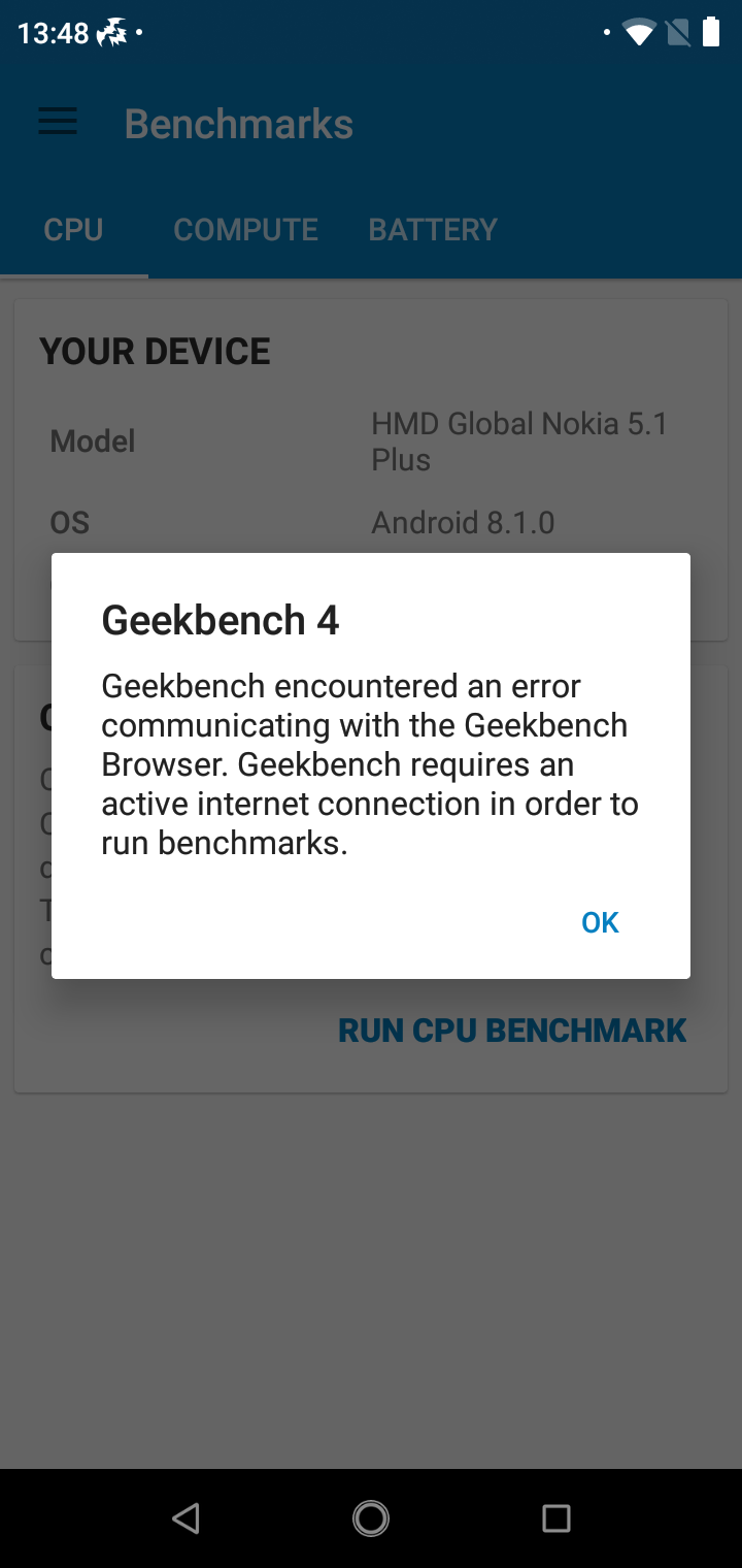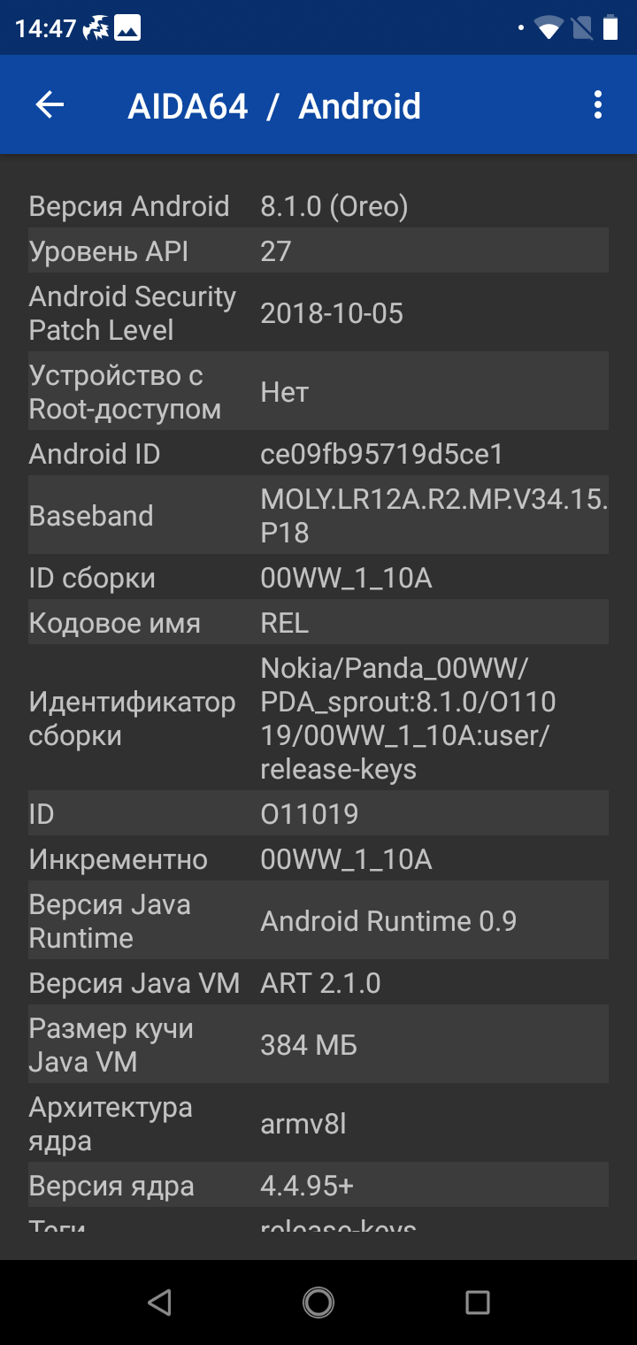 MediaTek Helio P60 — платформа достаточно свежая, она была представлена в начале 2018 года. MediaTek позиционирует данную SoC как первую из своих платформ с многоядерным блоком (мобильным APU) обработки данных, связанных с искусственным интеллектом, и технологией искусственного интеллекта MediaTek NeuroPilot. Тут, правда, мы видим несколько урезанную версию: штатно у MediaTek Helio P60 частота ядер достигает 2,0 ГГц, здесь же она понижена для обоих кластеров до 1,8 ГГц. И еще одна любопытная деталь: популярный бенчмарк GeekBench наша Nokia 5.1 Plus отказалась запускать наотрез.