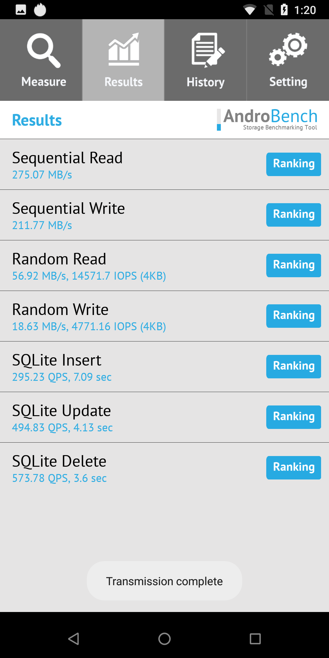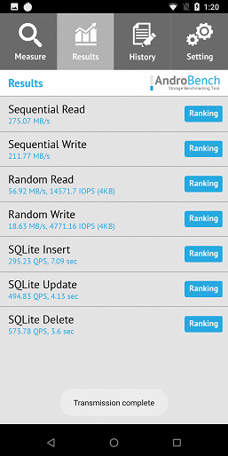 Результаты теста AndroBench на скорость работы с памятью: