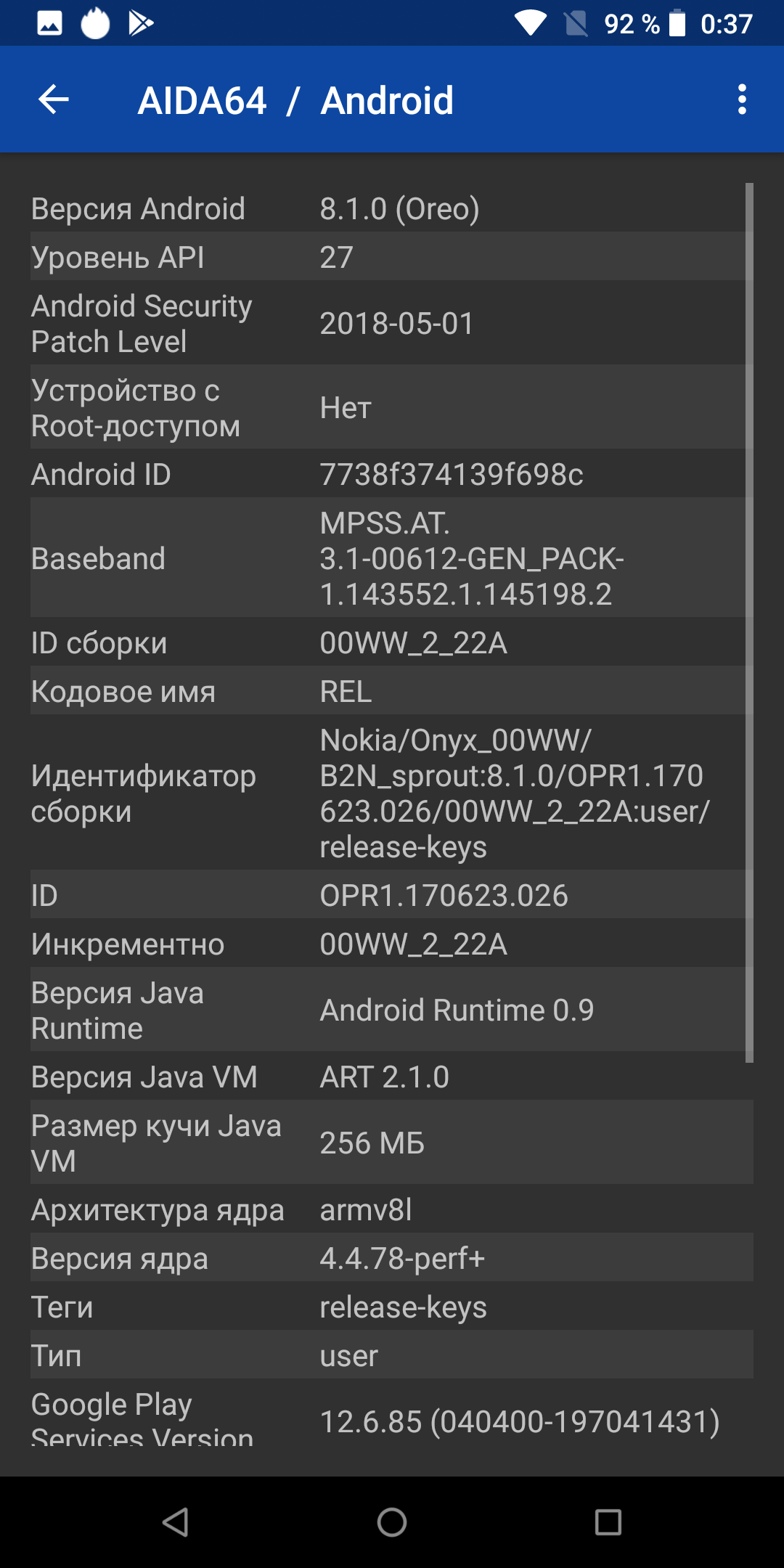 - Операционная система Android 8.1