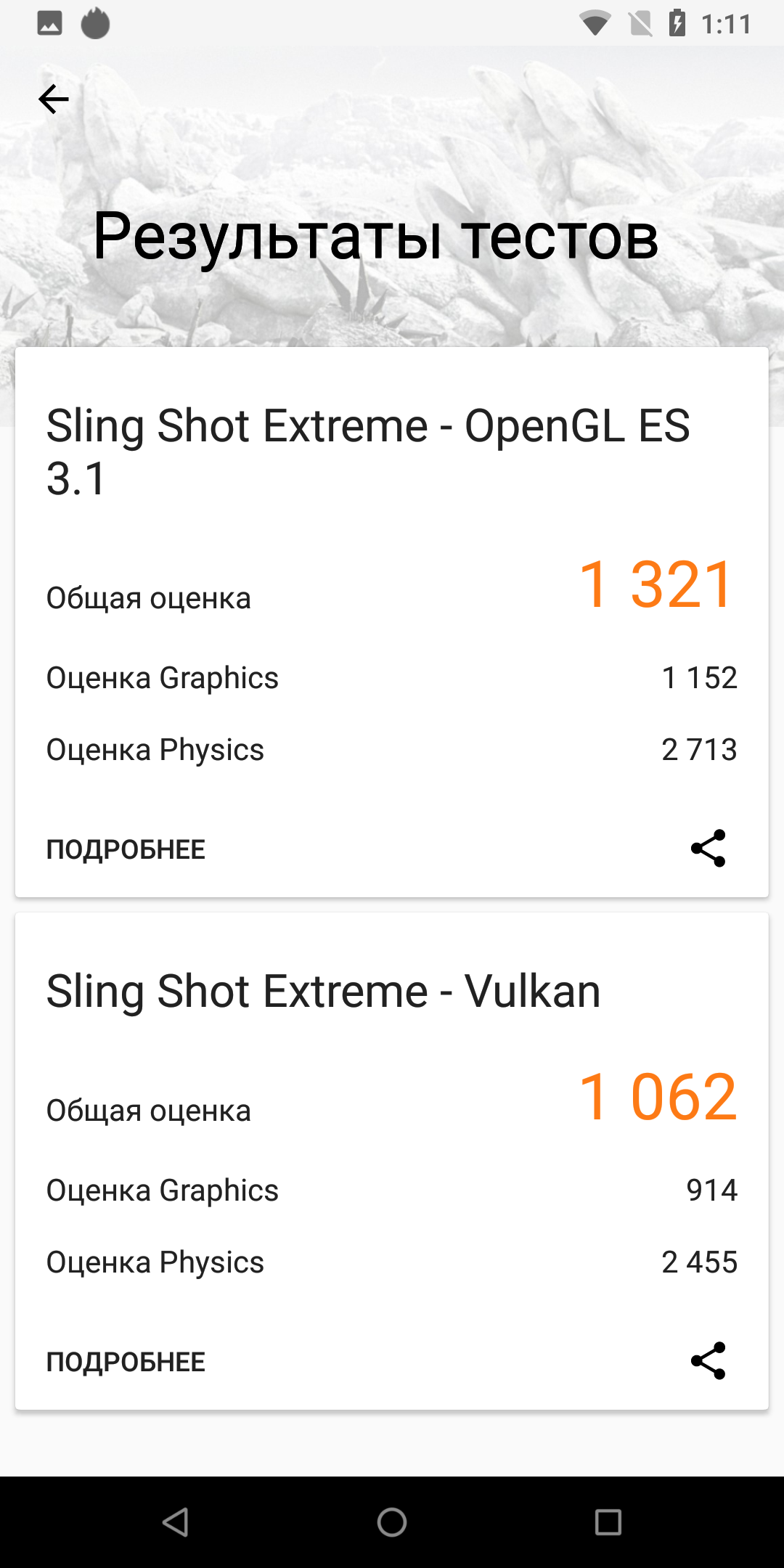 | 3DMark Ice Storm Sling Shot ES 3.1 (больше — лучше) | 1321 | 936 | 1090 | 420 | 311 |
