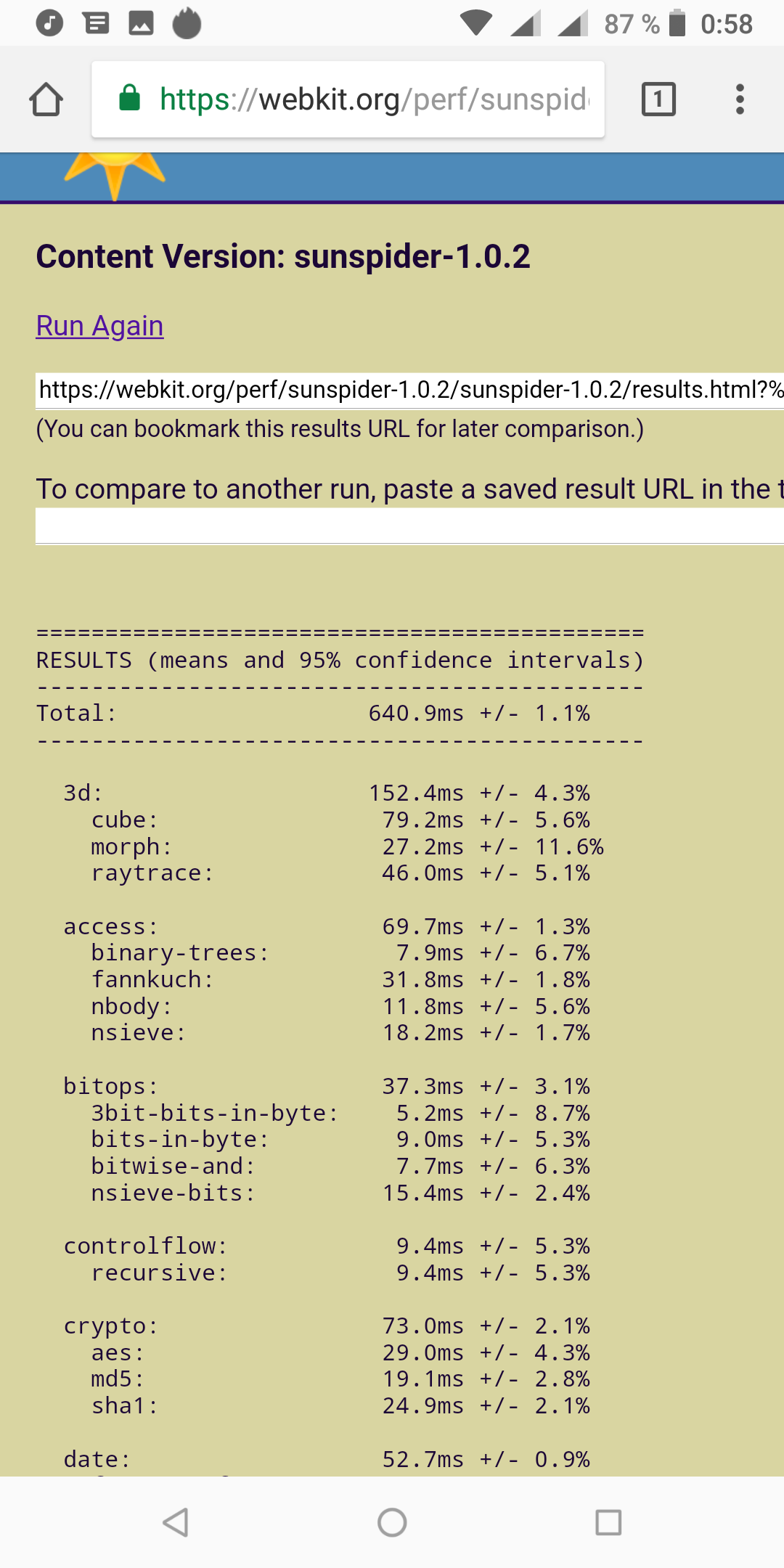 Что касается бенчмарков для оценки скорости движка javascript, то стоит всегда делать скидку на то, что в них результаты существенно зависят от браузера, в котором запускаются, так что сравнение может быть истинно корректным только на одинаковых ОС и браузерах, а такая возможность имеется при тестировании не всегда. В случае с ОС Android мы всегда стараемся использовать Google Chrome.