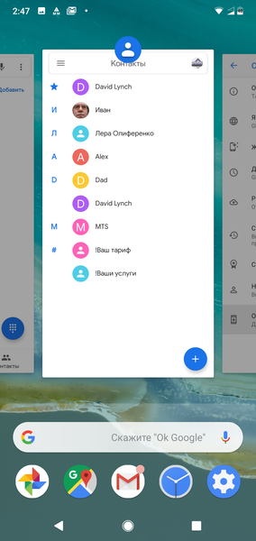 Телефонное приложение поддерживает Smart Dial, то есть во время набора телефонного номера сразу осуществляется и поиск по первым буквам в контактах. Способы сортировки и отображения контактов стандартны для интерфейса Android.