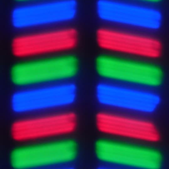 В данном смартфоне используется матрица типа IPS. Микрофотографии демонстрируют типичную для IPS структуру субпикселей: