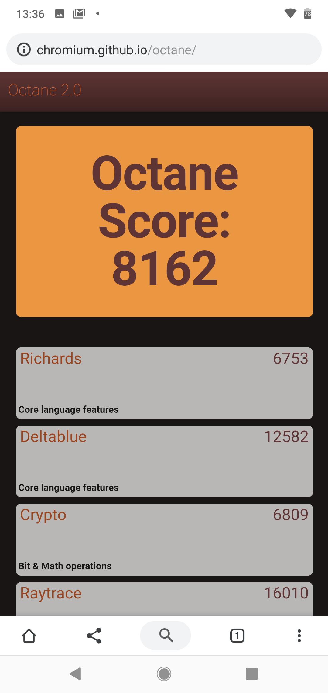 | Google Octane 2 (больше — лучше) | 8162 | 8420 | 6476 | 9521 | 9637 |