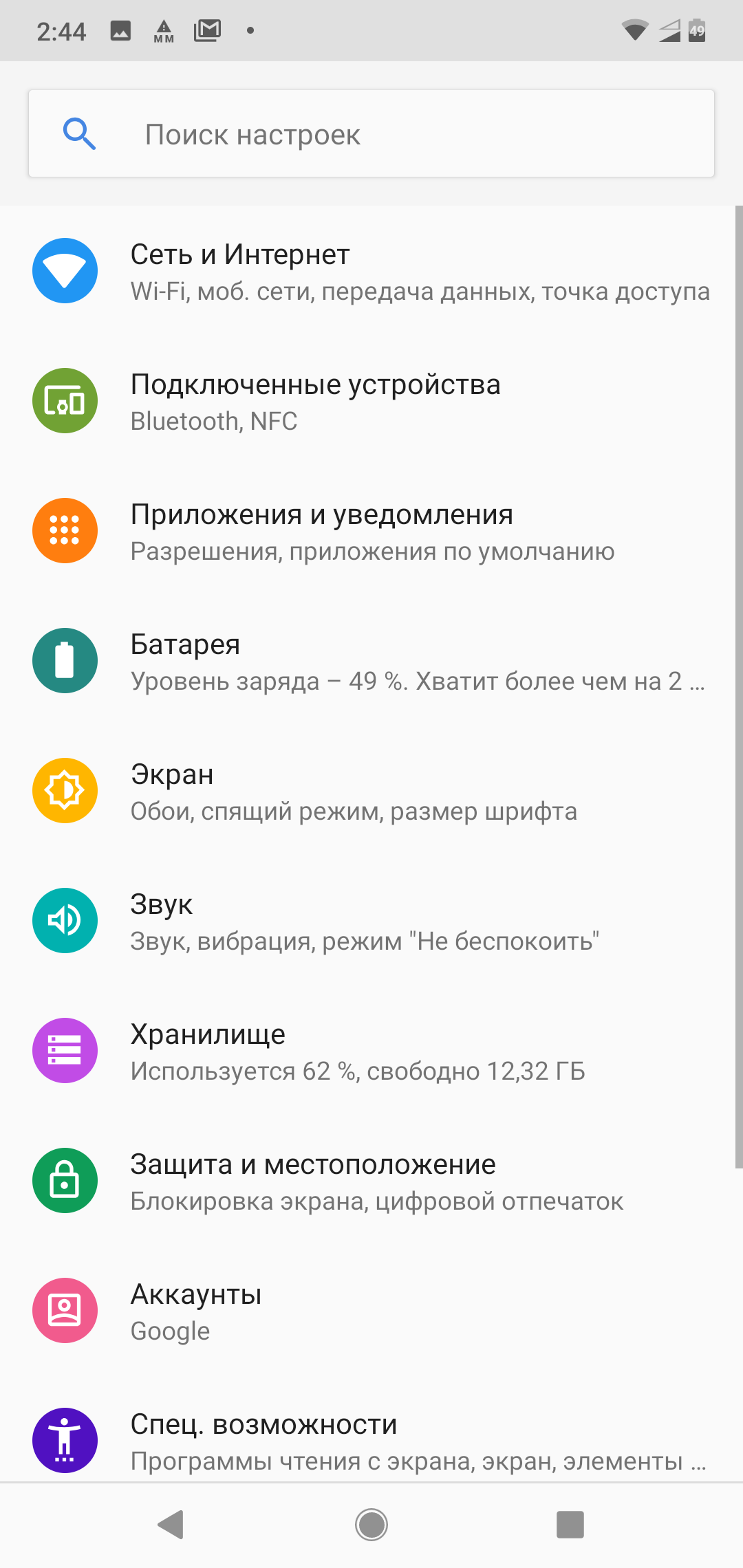 В качестве программной платформы Nokia 7.1 используется ОС Android версии 9 с возможностью обновления по воздуху (ОТА). Смартфоны последнего поколения Nokia в этом плане одинаковы: все они выпускаются по программе Android One на чистой ОС Android и не имеют собственных оболочек. Интерфейс и настройки полностью соответствуют чистому Android, никаких изменений тут не внесено. Среди предустановленных приложений можно найти полный набор Google Apps и полноценно работающий магазин Play Store.