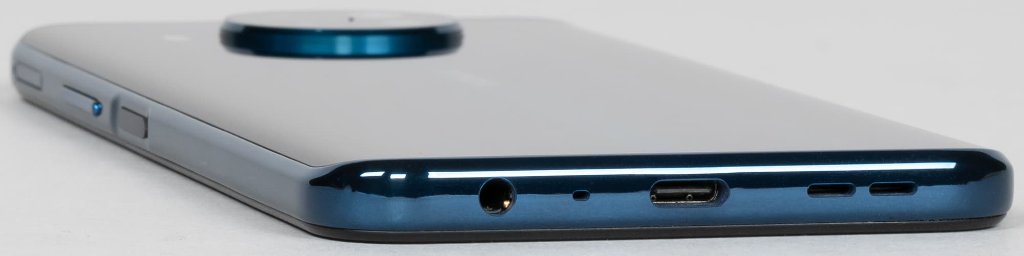 На верхнем торце установлен лишь дополнительный микрофон. В нижнем торце находятся 3,5-миллиметровый аудиовыход для наушников, разъем USB Type-C, а также динамик и разговорный микрофон. Стереодинамиков в смартфоне нет.