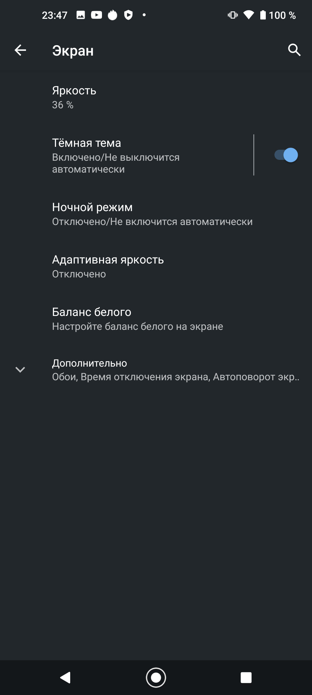 Имеется глобальная темная тема, разблокировка по лицу, работа в двух окнах, ограниченное несколькими жестами управление, но нет никаких виртуальных прилипчивых кнопок и выдвижных боковых панелей.