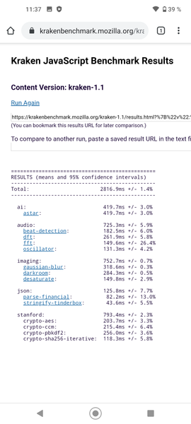 | Mozilla Kraken (мс, меньше — лучше) | 2817 | 5586 | 2921 | 3269 | 3090 |