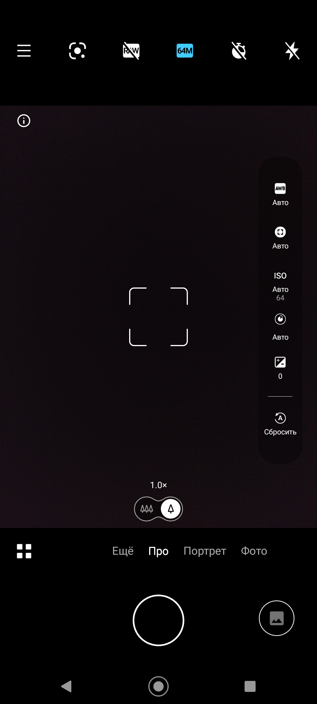 Интерфейс максимально подробный: есть и Pro-режим для фото, и новомодный нынче режим «кино» для видеосъемки в 24 fps с ручным управлением; а также возможность сохранять снимки в RAW, но, что любопытно, при съемке в полном разрешении 64 Мп эта возможность отсутствует.