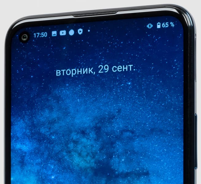 На фронтальной панели установлен один модуль для селфи-съемки. Его объектив врезан прямо в круглый вырез в матрице дисплея.
