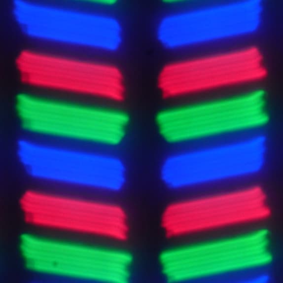 В данном смартфоне используется матрица типа IPS. Микрофотографии демонстрируют типичную для IPS структуру субпикселей: