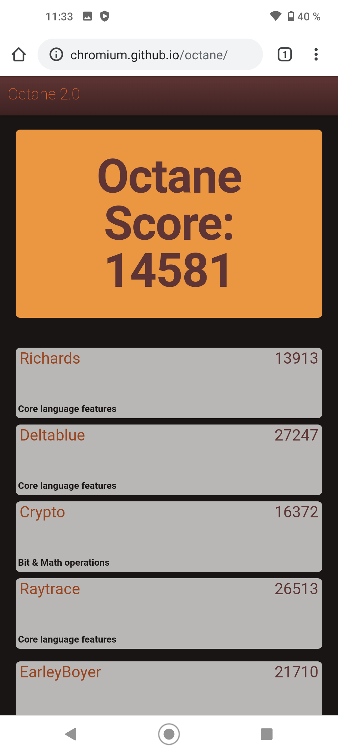 | Google Octane 2 (больше — лучше) | 14581 | 12817 | 11969 | 14246 | 14084 |