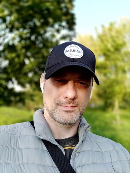 Селфи-камера обладает, напротив, весьма высокими характеристиками (24 Мп, f/2.0), и может выдать очень достойную картинку как по детализации, так и по широте динамического диапазона без завалов в светах и тенях. Однако в портретном режиме ИИ (без дополнительного физического сенсора глубины сцены) работает топорно и жестко. Здесь явно пригодятся еще и средства встроенного бьютификатора. Кстати, оптика у фронтальной камеры тоже Zeiss.