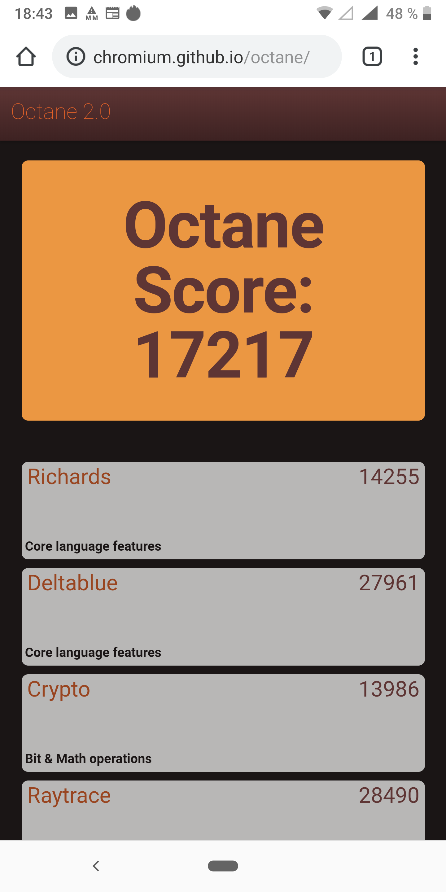| Google Octane 2 (больше — лучше) | 17217 | 25361 | 18909 | 22228 |