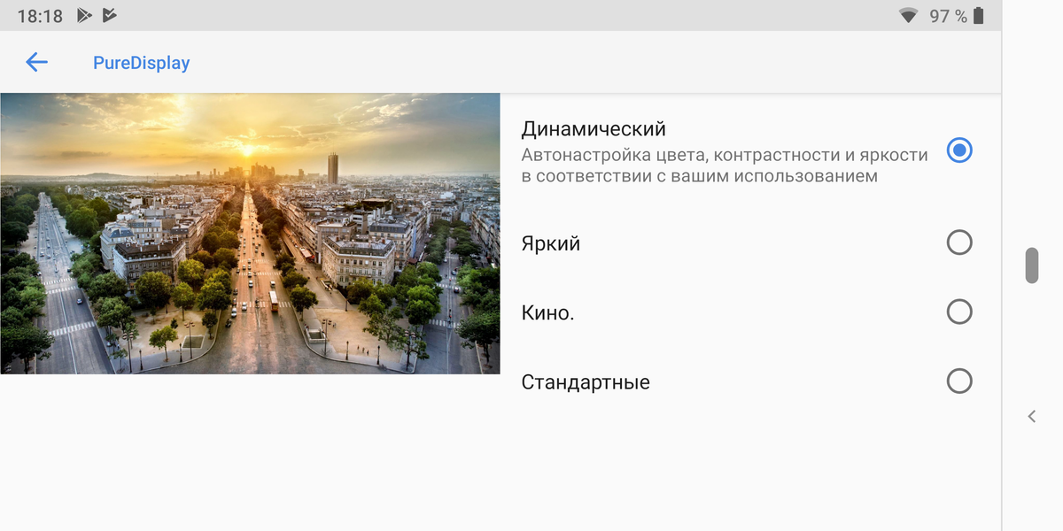 Профили Динамический и Яркий отличаются увеличенными насыщенностью и цветовым контрастом: