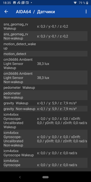 - Датчики приближения и освещения, магнитного поля, акселерометр, гироскоп