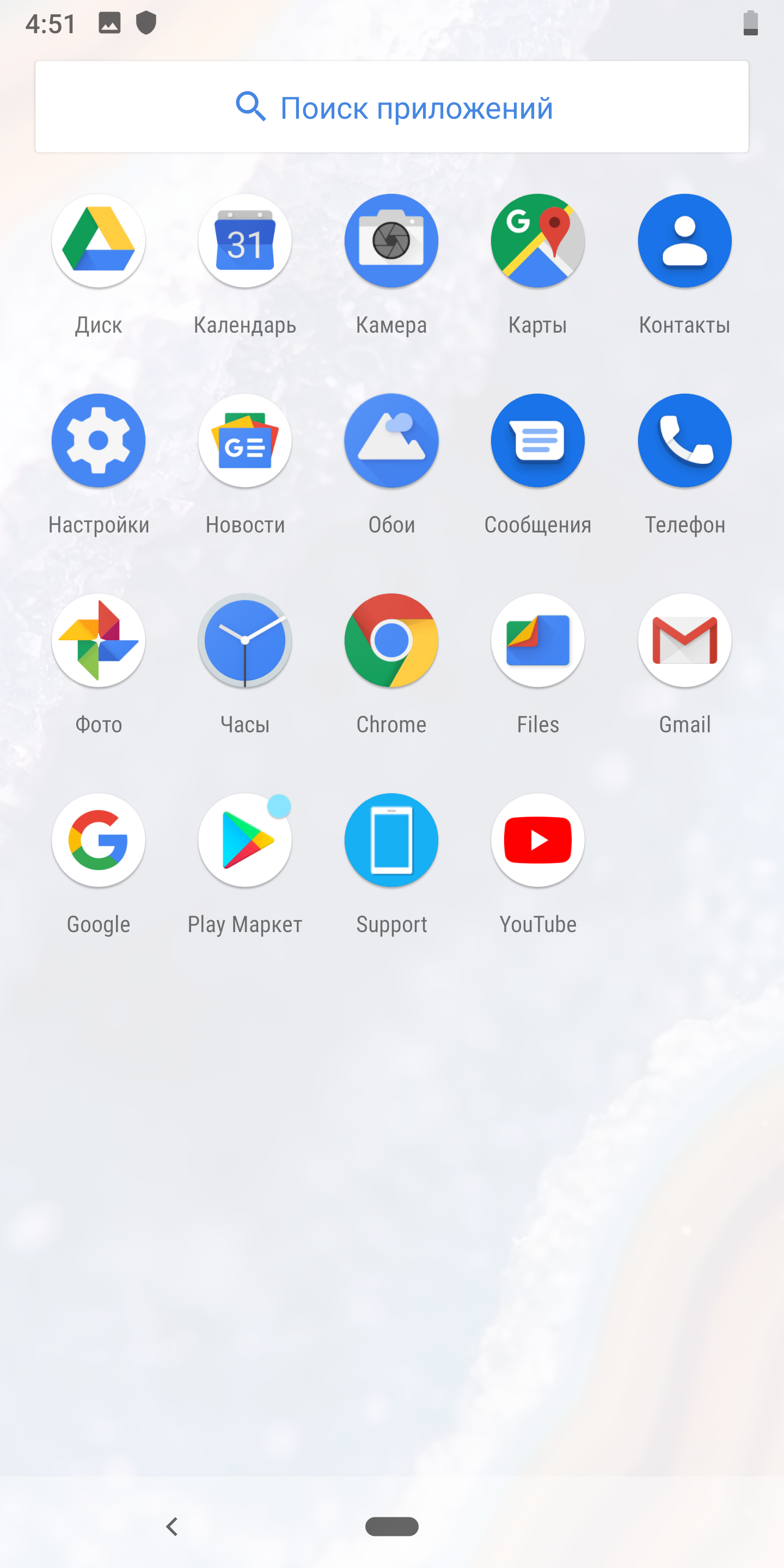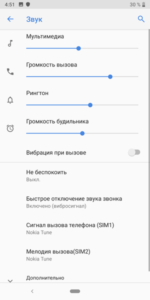 В качестве программной платформы используется ОС Android версии 9 с возможностью обновления по воздуху (ОТА). Все смартфоны последнего поколения Nokia в этом плане одинаковы: они выпускаются по программе Android One на чистой ОС Android и не имеют собственных оболочек. Интерфейс и настройки полностью соответствуют чистому Android, никаких изменений тут не внесено. Среди предустановленных приложений можно найти полный набор Google Apps и полноценно работающий магазин Play Store. Производитель гарантирует поддержку обновлений версий ОС Android в течение 3 лет.
