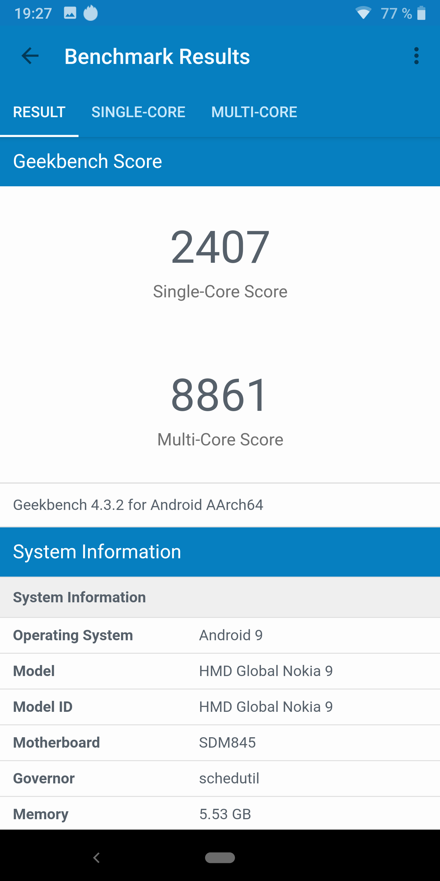 | Nokia 9 Pureview (Qualcomm Snapdragon 845) | Xiaomi Mi 9 (Qualcomm Snapdragon 855) | Samsung Galaxy S10+ (Samsung Exynos 9820) | Huawei P30 Pro (Huawei Kirin 980) | |