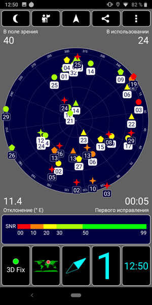 Навигационный модуль работает с GPS (двухчастотный, с A-GPS), с отечественной Глонасс, с китайской Beidou и с европейской Galileo. Первые спутники даже при холодном старте обнаруживаются быстро, в течение первых же секунд, точность позиционирования не вызывает претензий. Магнитный компас, необходимый для навигационных программ, в смартфоне имеется.