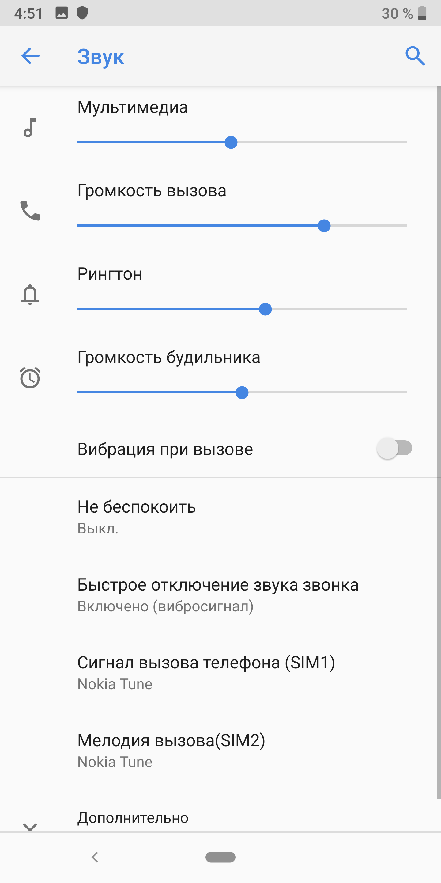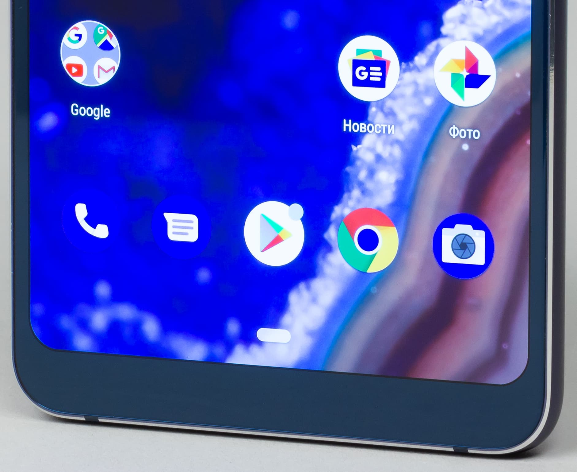 На передней панели отсутствует вырез-«челка» в экране, да и в целом верхний и нижний сегменты рамки вокруг дисплея большие. Они имеют практически одинаковую ширину, из-за чего сходу трудно опознать, какой стороной лежит смартфон, приходится присматриваться. И если верхний сегмент хотя бы занят динамиком, камерой, глазками датчиков и, конечно, надписью «Nokia», то нижний просто пустует, а сканер отпечатков пальцев расположен под плоскостью экрана. Очень жаль, что ради глупой моды от классического сканера под экраном (при взгляде в фас) отказываются даже там, где для его размещения есть место.