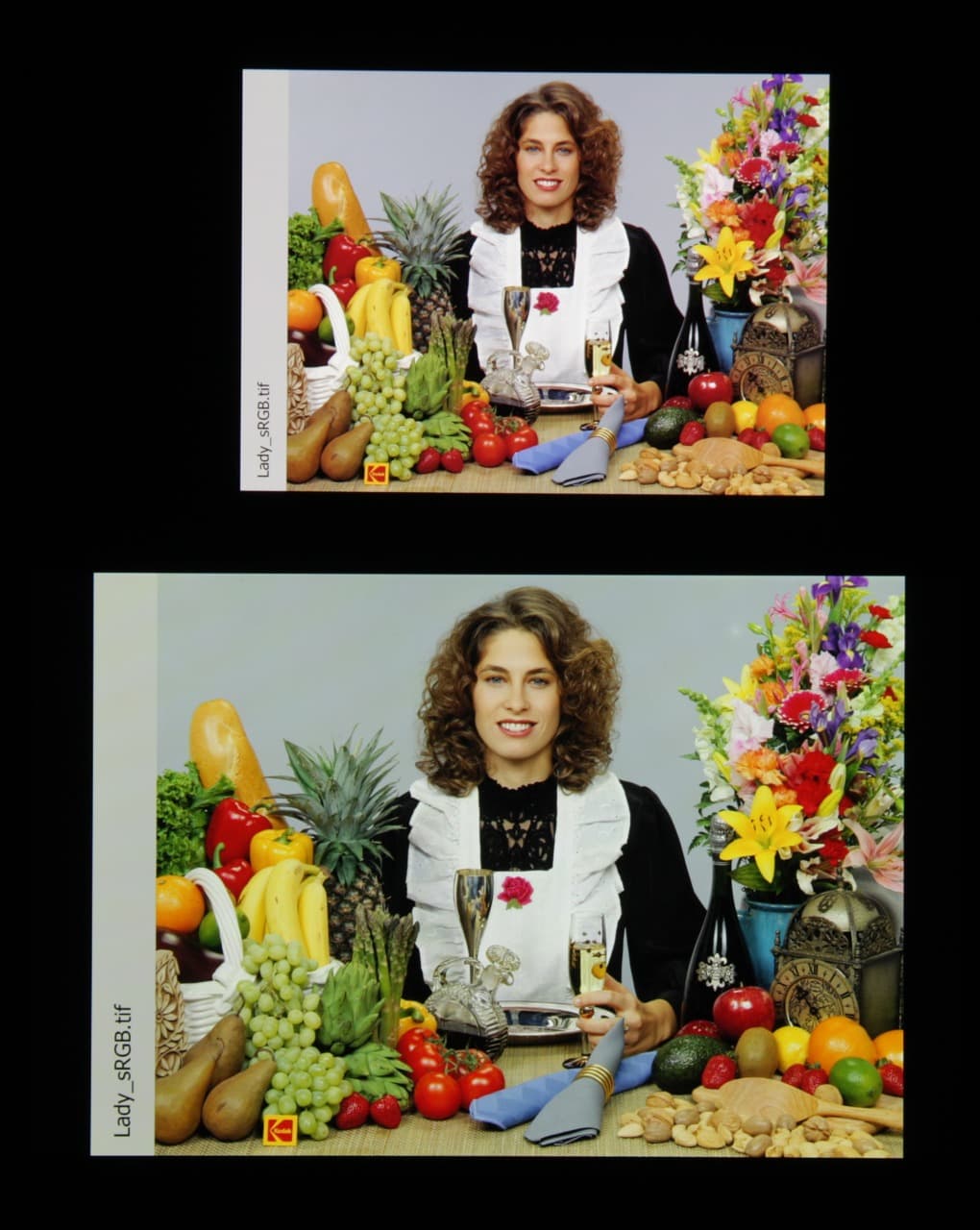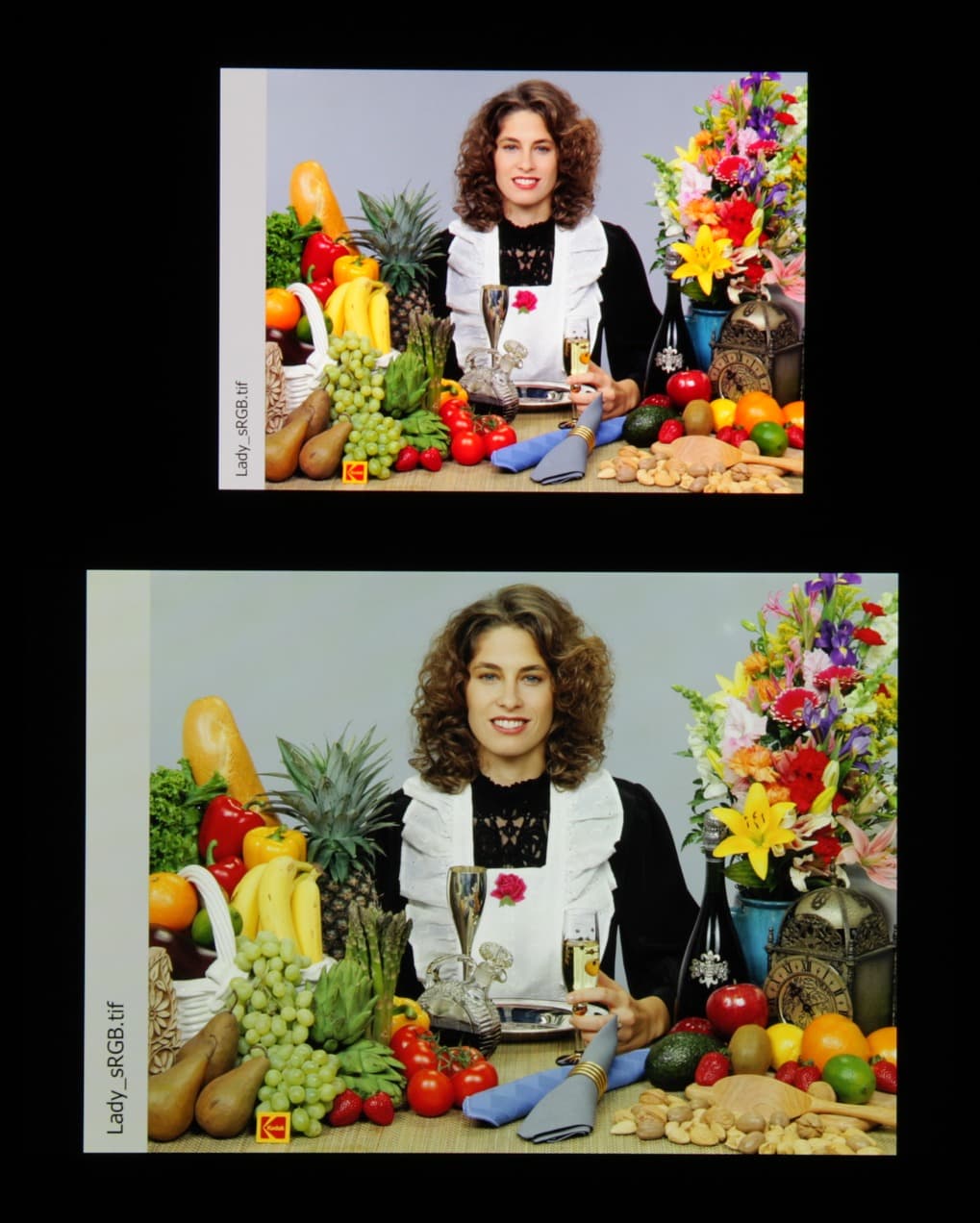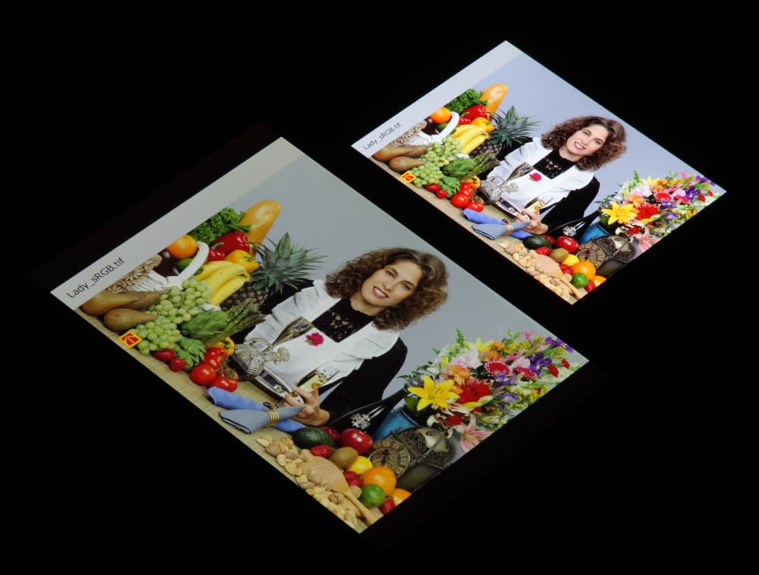 Отметим, что на экранах с широким цветовым охватом (без соответствующей коррекции) цвета́ обычных изображений, оптимизированных для устройств sRGB, выглядят неестественно насыщенными. Отсюда и рекомендация: в большинстве случаев смотреть кино, фотографии и все естественное лучше при выборе профиля Стандартные [цвета], и только если фотография или видео имеют охват DCI-P3, принятый в цифровом кинематографе и «родной» для топовых устройств Apple, имеет смысл переключить профиль на Кино.