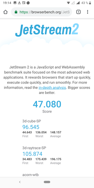 Что касается бенчмарков для оценки скорости движка javascript, то стоит всегда делать скидку на то, что в них результаты существенно зависят от браузера, в котором запускаются, так что сравнение может быть истинно корректным только на одинаковых ОС и браузерах, а такая возможность имеется при тестировании не всегда. В случае с ОС Android мы всегда стараемся использовать Google Chrome.