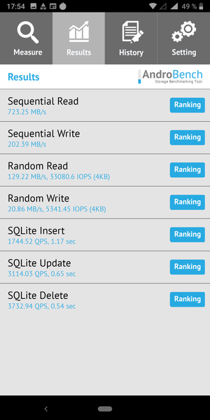 Qualcomm Snapdragon 845 — флагманская платформа прошлого сезона, это все еще очень мощная платформа лидера рынка мобильных SoC. Она демонстрирует высокие результаты во всех тестах, хотя отрыв от актуальных флагманских платформ заметен (в процессорных тестах он больше, чем в графических). В реальном применении аппарат не испытывает ни малейших проблем ни с плавностью интерфейса, ни с запуском приложений, ни с самыми сложными играми. Требовательные игры, включая Modern Combat 3, Injustice 2 и PUBG, уверенно идут без малейших притормаживаний при максимальном качестве графики.