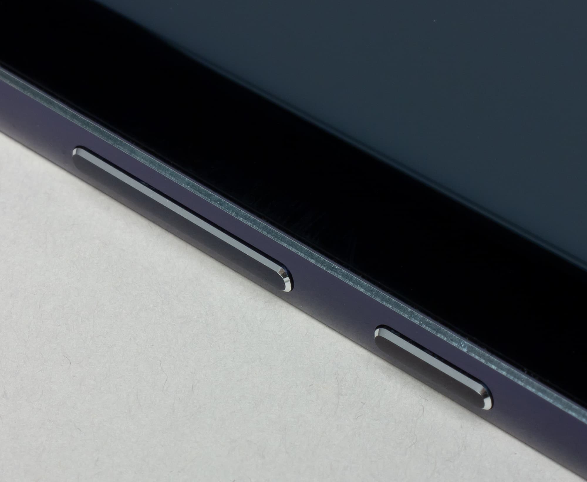 Аппаратные кнопки широкие, но, к сожалению, выпирают за пределы боковой грани они очень мало, их трудно нащупать вслепую, приходится каждый раз смотреть. К тому же, никаких тактильных различий между поверхностями клавиш не предусмотрели.