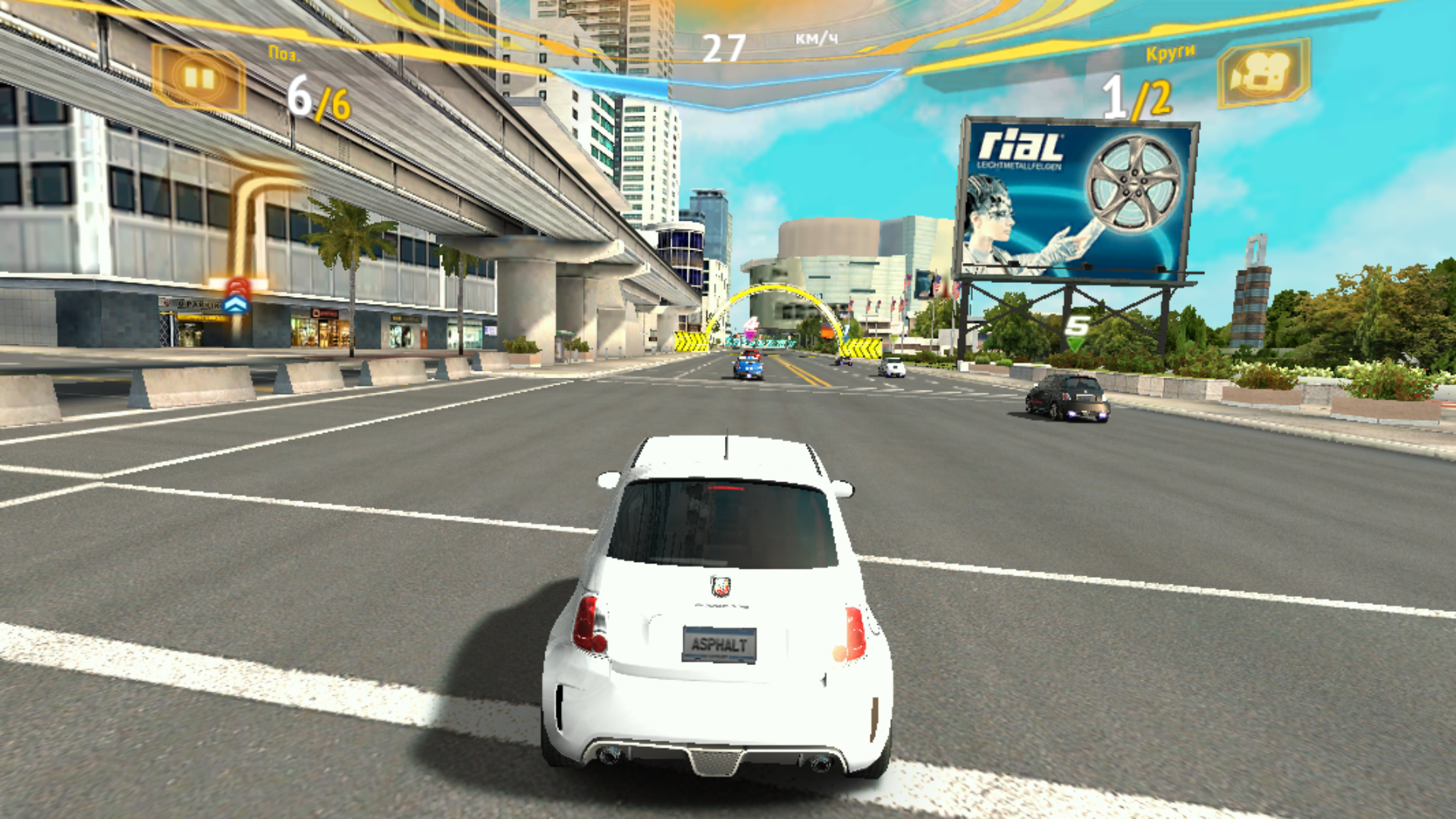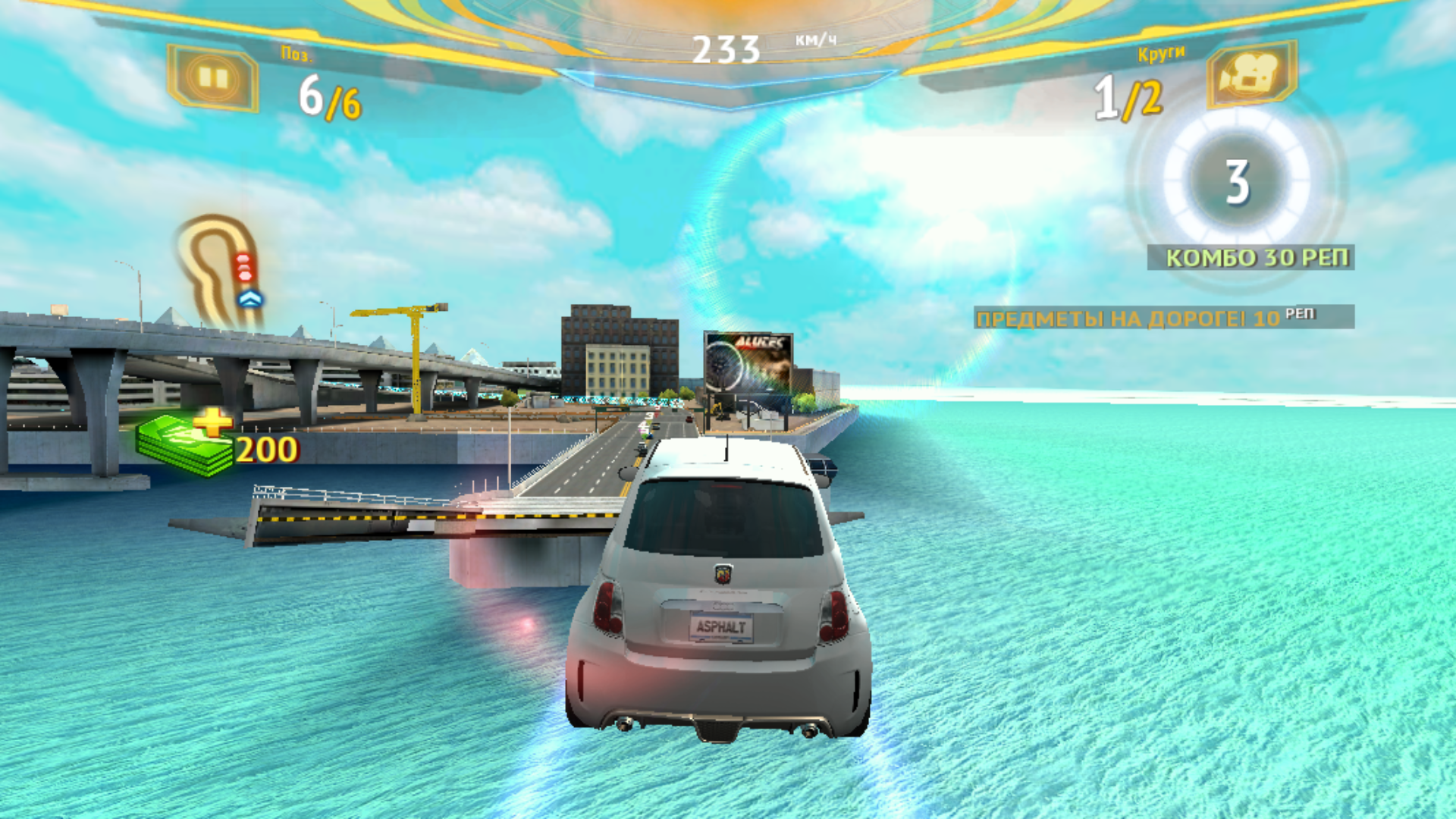 Справедливости ради стоит отметить, что явный эффект масштабирования с картинки меньшего разрешения виден не всегда. Asphalt 8: Airborne завораживает своими визуальными эффектами, и на большой скорости уже не до разрешения. Отметим также, что при длительной игре корпус смартфона в верхней части сзади заметно нагревался.