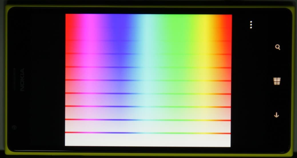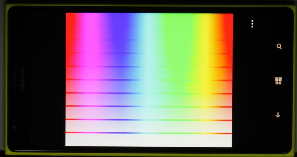 Видно, что у Lumia 1520 под углом цвета немного сместились в красно-синюю область. Затем белое поле: