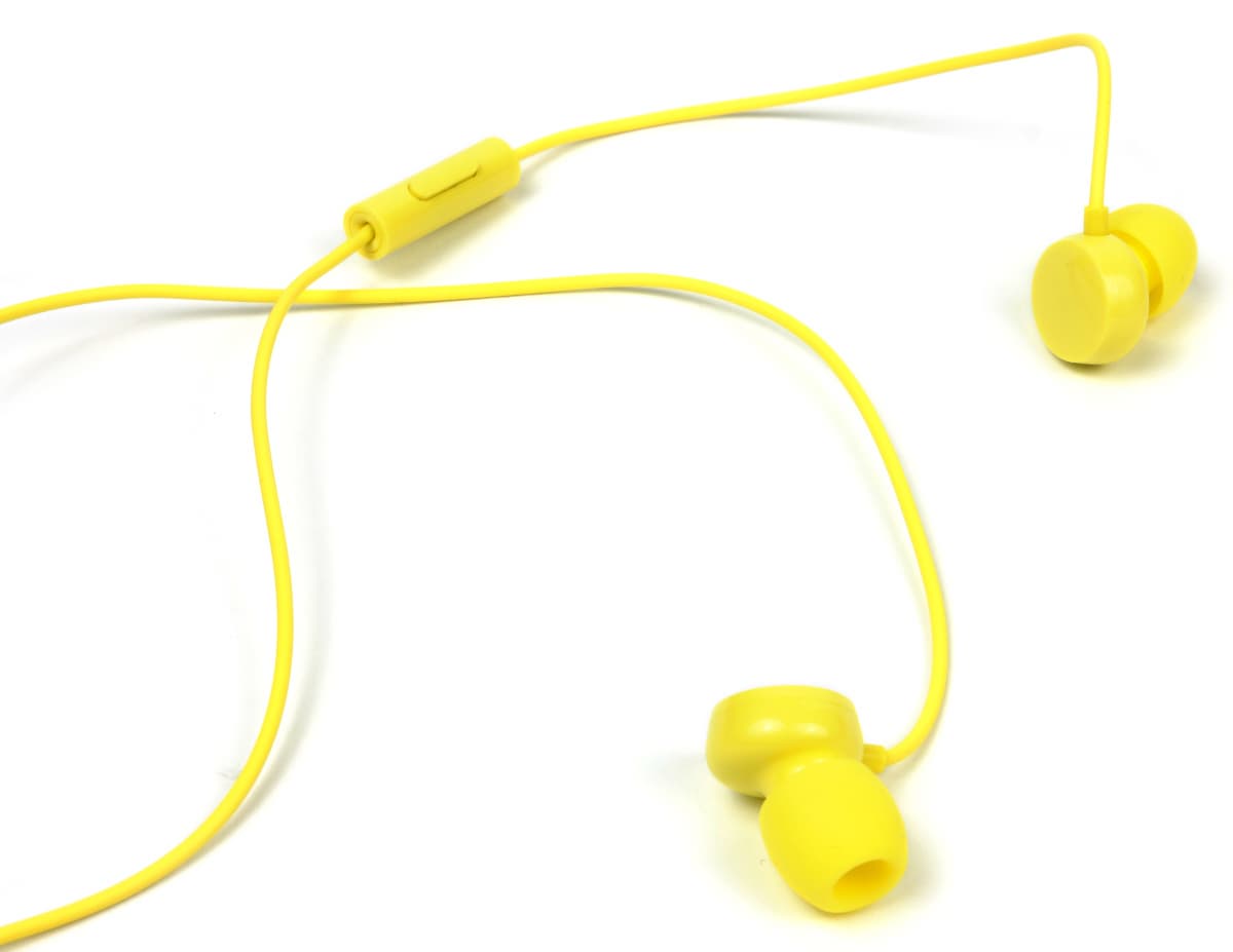 Отметим, что для гарнитуры есть четыре варианта вкладышей разных размеров, а сама она имеет одну кнопку и выполнена в желтом цвете, соответствующем корпусу тестируемого аппарата.