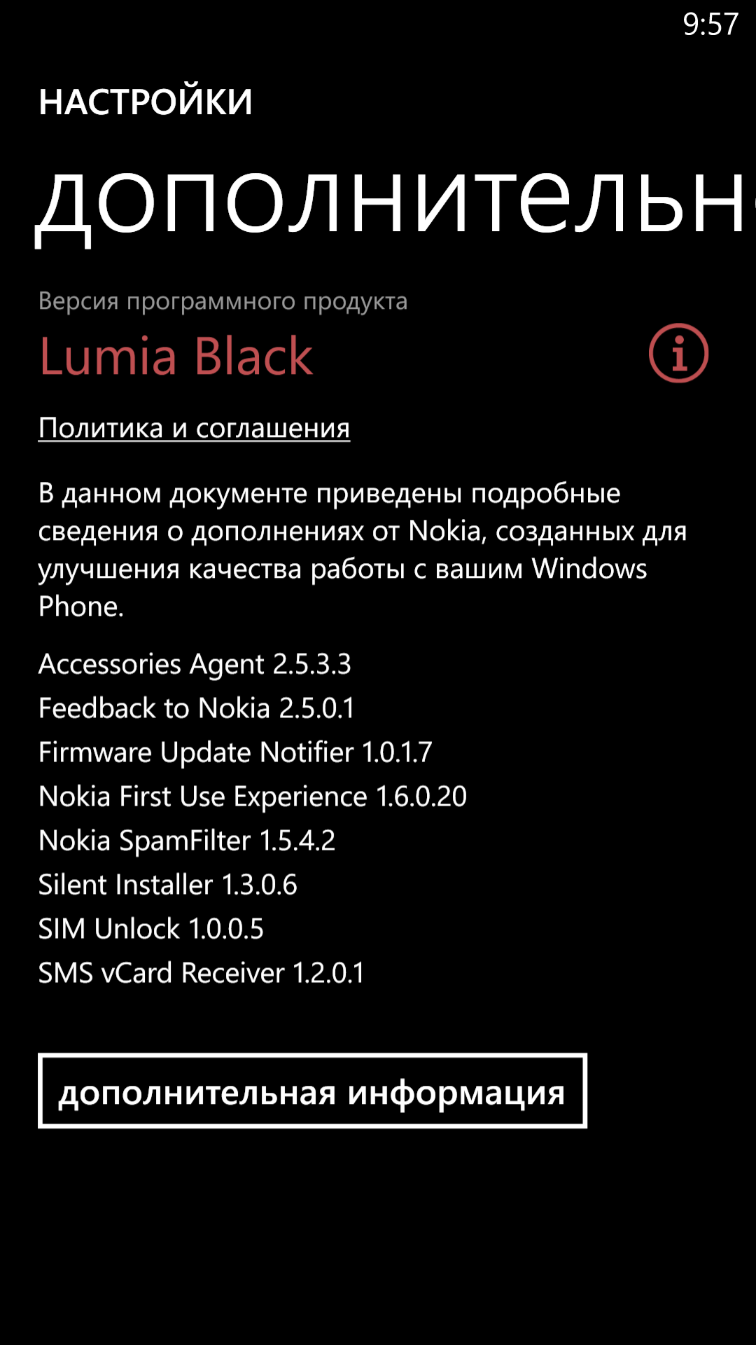 - Операционная система Microsoft Windows Phone 8, пакет Lumia Black