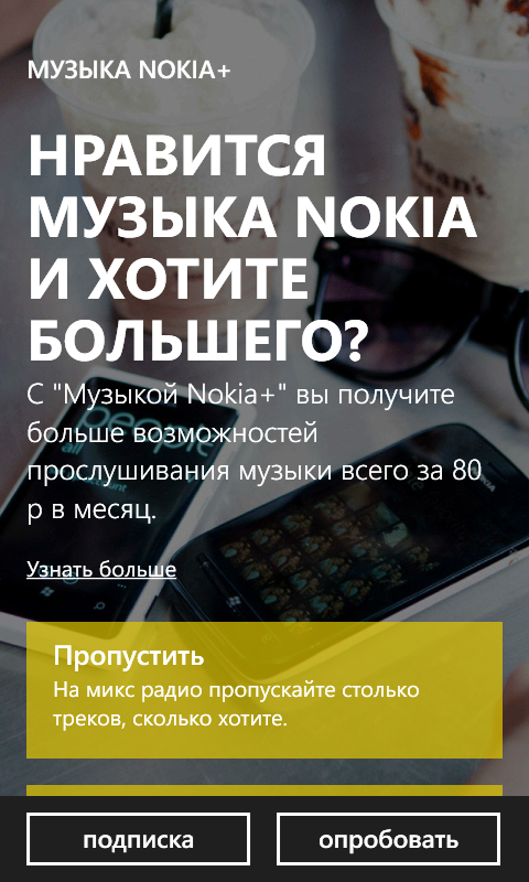 Музыка Nokia+ представляет собой мультимедийный комбайн из бесплатного потокового радио (с возможностью офлайнового прослушивания понравившихся треков за месячную подписку) и обычного магазина цифровой музыки. Подход, в целом, понятен, таких приложений и сервисов сейчас появляется все больше, однако приложение Nokia совмещает в себе сразу два подхода: один от iTunes, другой от Яндекс.Музыки.