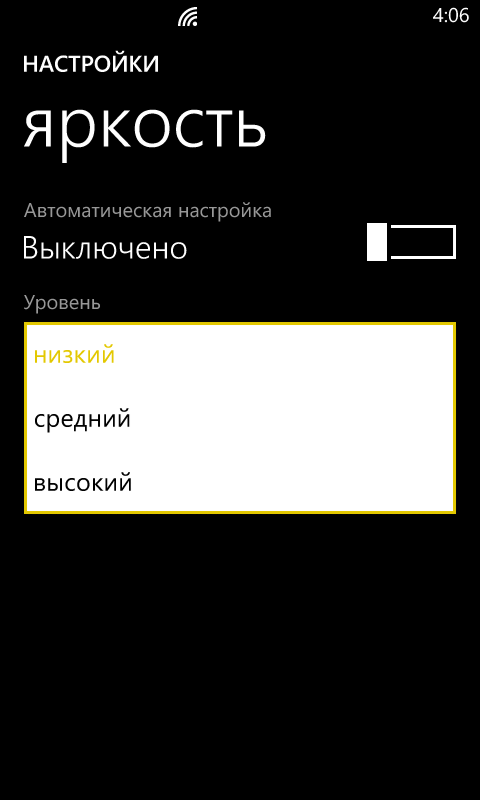 Яркостью подсветки дисплея операционная система управляет, основываясь на показаниях датчика внешней освещенности. Уровень мощности подсветки также можно опосредованно установить вручную, всего уровней настройки яркости три.