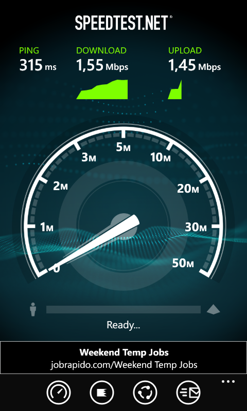 Проблем с работой модуля сотовой связи не возникло. Смартфон оперативно подключался к сети и обеспечивал надежную связь в различных условиях. Передача данных по мобильной сети в основном ограничивалась ее возможностями, а не возможностями устройства. Проверка скорости соединения в полевых условиях Московской области продемонстрировала неплохой результат. Забавно, но иногда вместо значка «H», смартфон показывал необычный значок «4G» — понятно, что никакого LTE в Nokia Lumia 520 нет, да и за пределами Москвы он встречается лишь спорадически. Видимо, просто операционная система так воспринимала сигнал HSPA+.