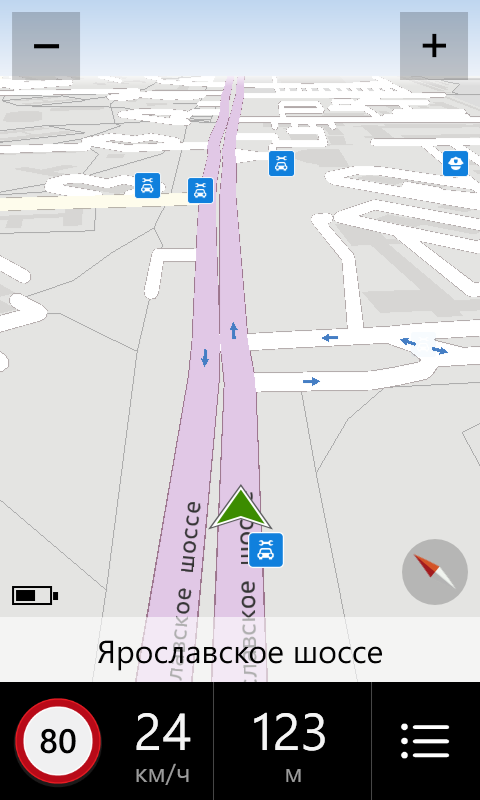 Автомобильная навигация HERE Drive помечена как бета-версия, однако вполне работоспособна и сегодня. После обновления утилиты потребуется загрузить данные для голосового сопровождения и карты необходимых регионов, если это не было сделано для HERE Maps. Карты могут отображаться в 2D или 3D режиме, есть выбор слоев POI, предупреждения о превышении скорости, хранение данных о местоположениях, поддержка учетной записи Nokia.